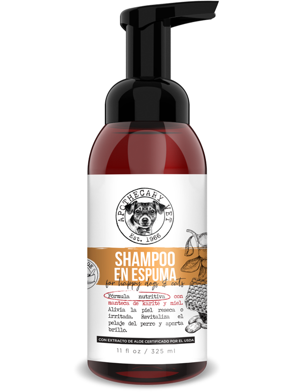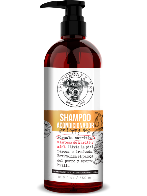 Fórmula nutritiva manteca de karité y miel. Alivia la piel reseca e irritada. Revitaliza el pelaje del perro y aporta brillo.