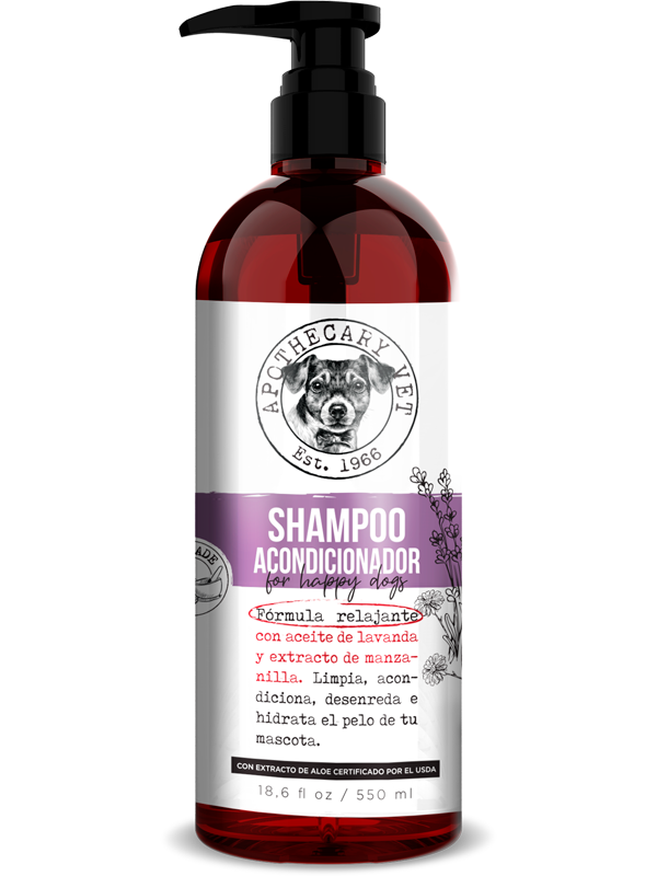 Fórmula relajante con aceite de lavanda y extracto de manzanilla. Limpia, acondiciona, desenreda e hidrata el pelo de tu mascota.